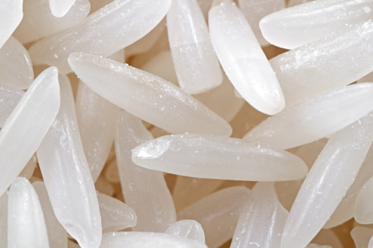Hæld hvide, ukogte ris ned i åbningen af sokken til den er 2/3 fyldt.