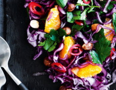 Opskrift I Rødkålsalat med appelsin, nødder og chili