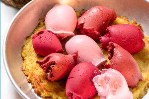 - Kartoflerne skrælles og ‘køres’ på mandolinjern eller spiralizer til tykke kartoffel-spaghetti.