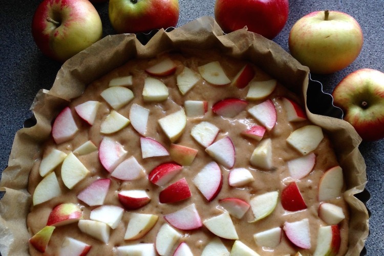 Æbler og hindbær krydret med kage