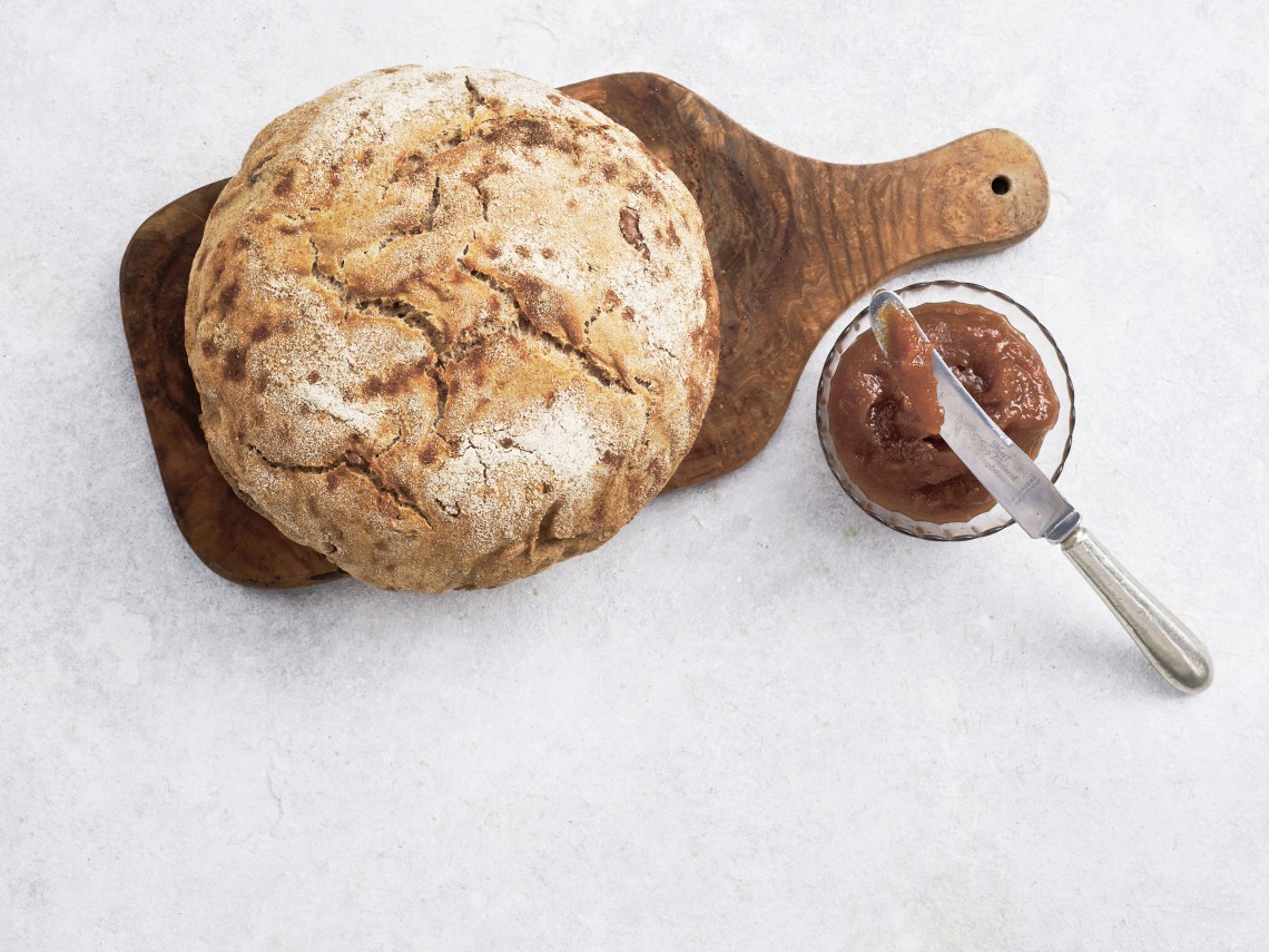 Tag låget af, skru ovnen ned på 220 grader og bag brødet yderligere 20 min.