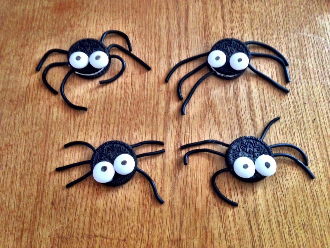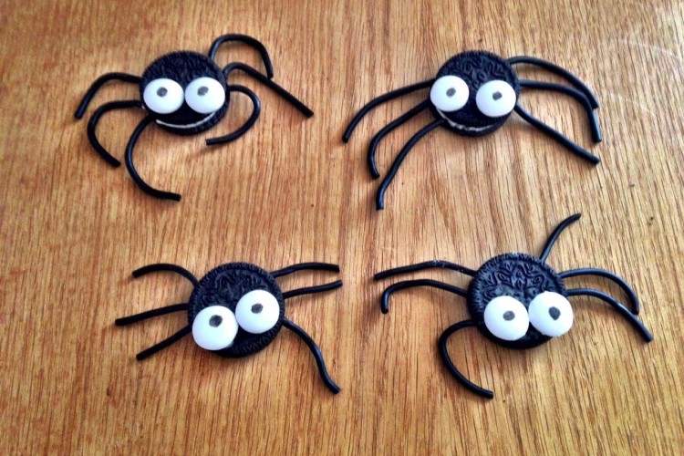 Sjove edderkopper lavet af Oreo kiks, giver mange timers sjov med børnene. Prøv f.eks. at lave smilende edderkopper ved at forskyde den nederste kiks en smule.