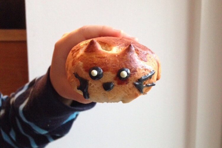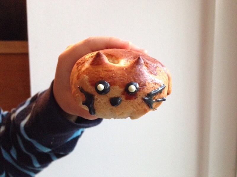 Nu er det fastelavn, så hvis du skal lave fastelavnsboller, kan du jo lave dem Jens Emil og jeg lavede i dag. Vi lavede dem på en ny måde, de blev nemlig til små tykke katte, med lækkert chokolade-remonce som fyld.