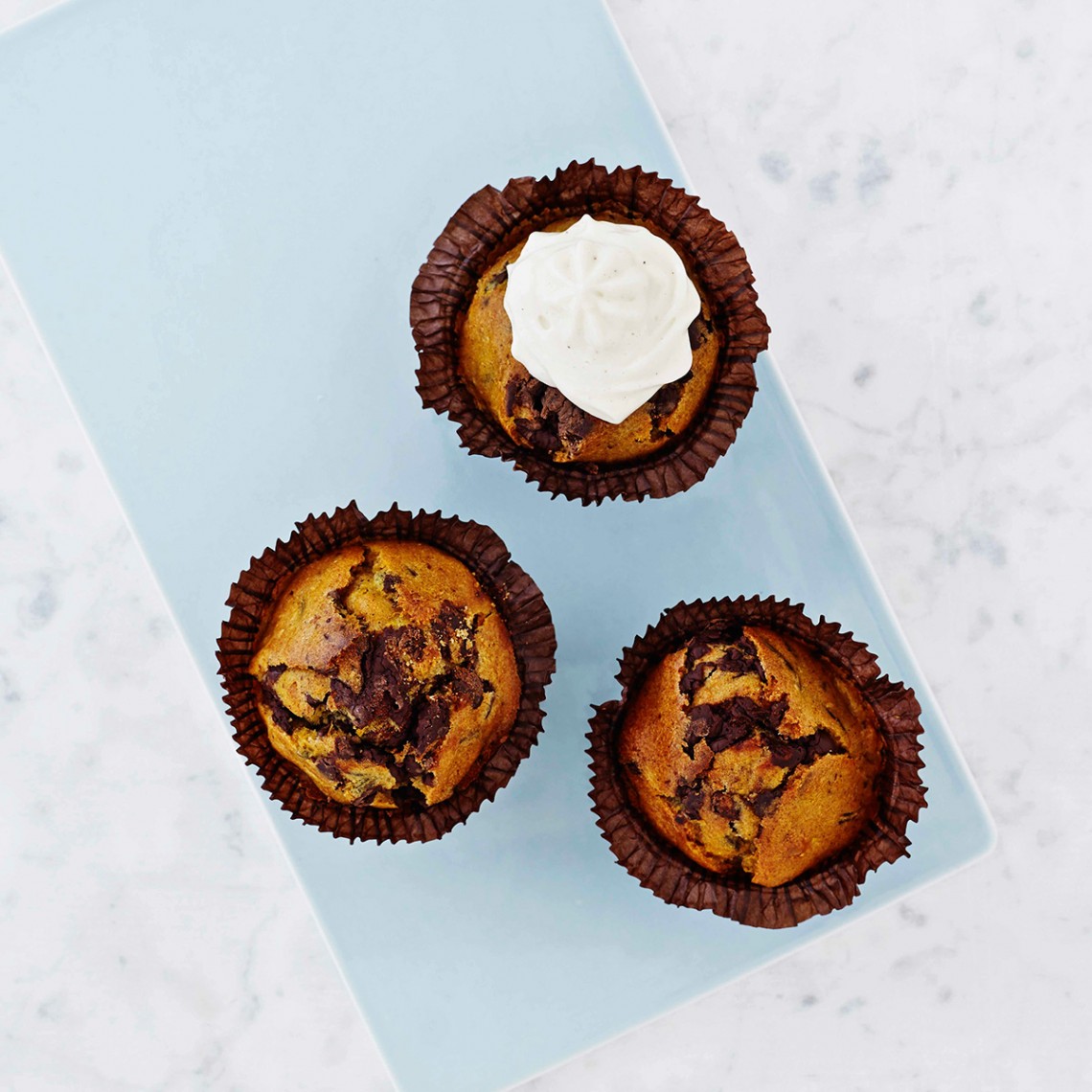 Hvis du gerne vil have creme på toppen af dine muffins, kan du lave skumfidusmoussen – bare med dobbelt så meget flødeost i.