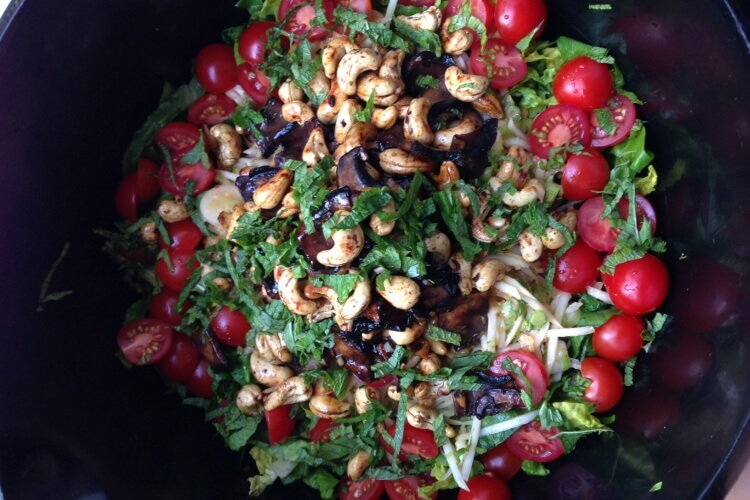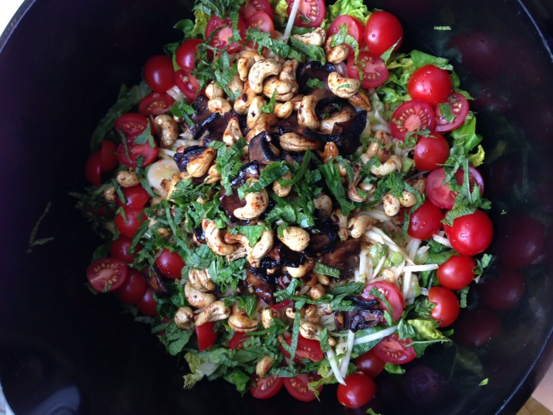 Grøn papayasalat med cashewnødder og Porto Bello-svampe
