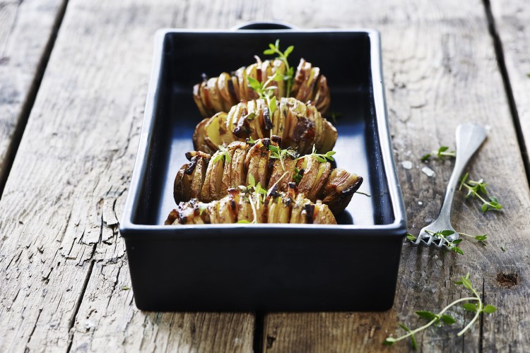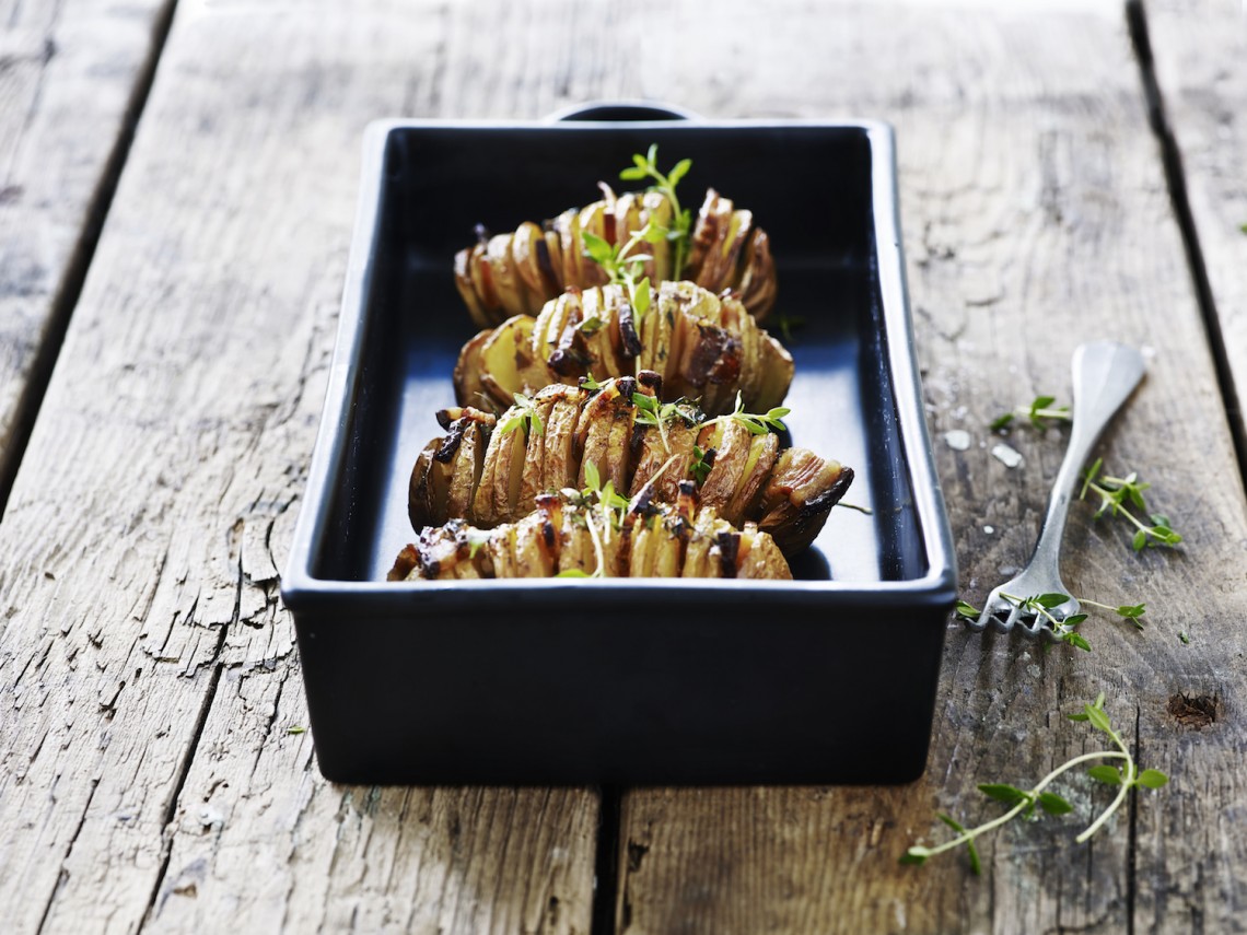 Her får du en spændende version af den klassiske hasselbach kartoffel. Den kan varieres med fyld og krydderurter alt efter dine præferencer. I min version har jeg valgt bacon og timian.