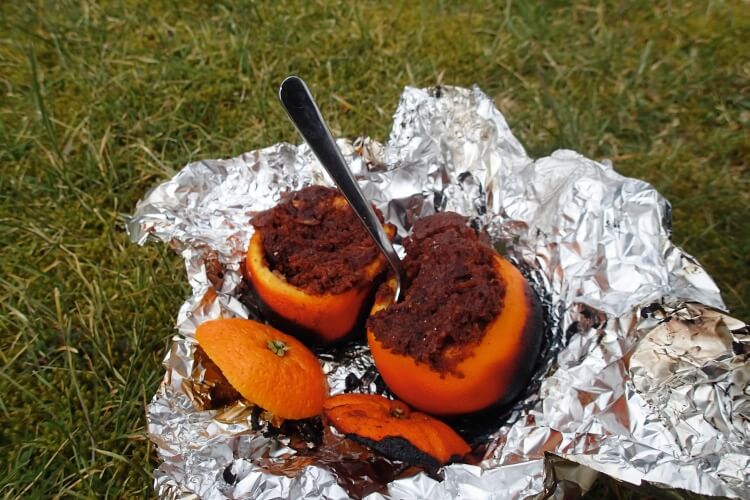 5. Fold stanniol omkring appelsinerne og læg dem i udkanten af bålet i cirka 30 min.