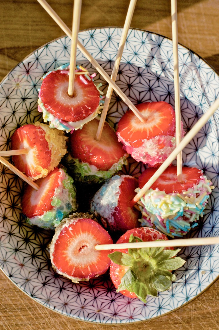 Lækre jordbærspyd der er nemme at lave sammen med børnene