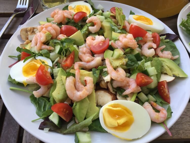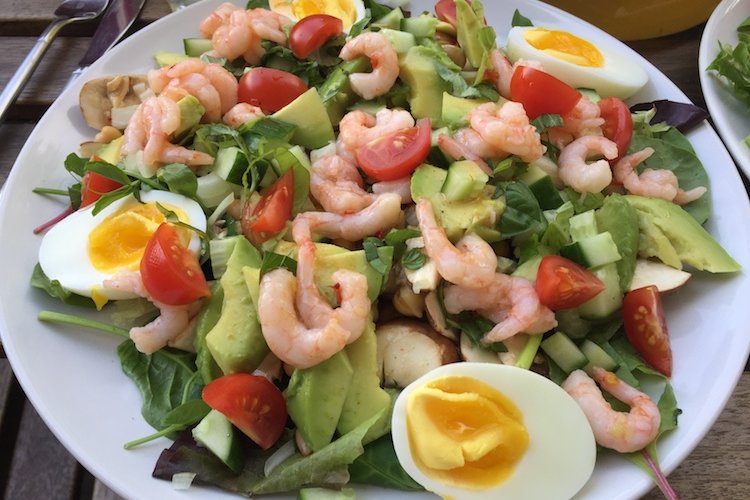 I weekenden kan jeg godt lide at løbe en tur i skoven, og når jeg kommer tilbage, skal der altså ikke gå for lang tid, før der er mad på bordet – sund og mættende må den gerne være. Sidste weekend lavede jeg denne salat det tog ca 15 minutter, og jeg blev så mæt, at jeg lige måtte tage en morfar/mormor :-)