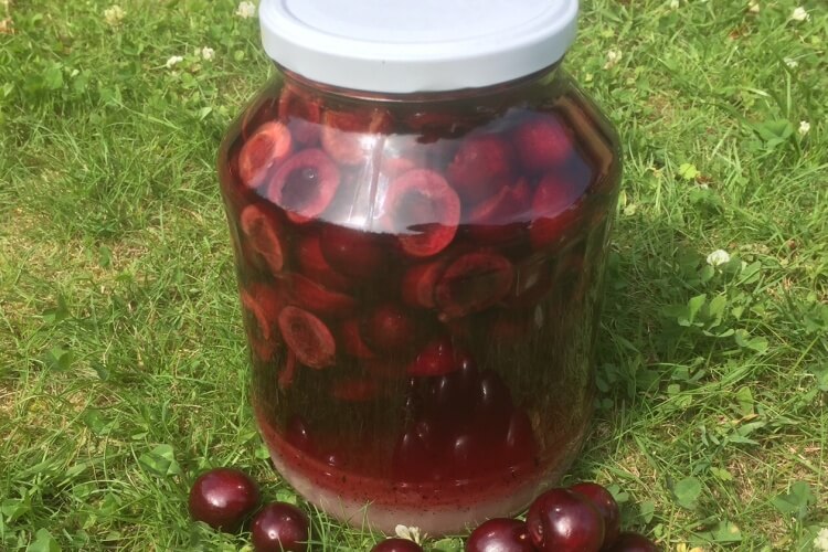 Det er tid til at erobre havens kirsebærtræ tilbage for en stund, og sikre os en høst til julens kirsebærlikør, så bevæbnet med net, rive til at ryste hvepse af træet og holde de øverste grene nede, er vi klar til noget af det der gør julen ekstra hyggelig, hjemmelavet kirsebærlikør til risalamanden.