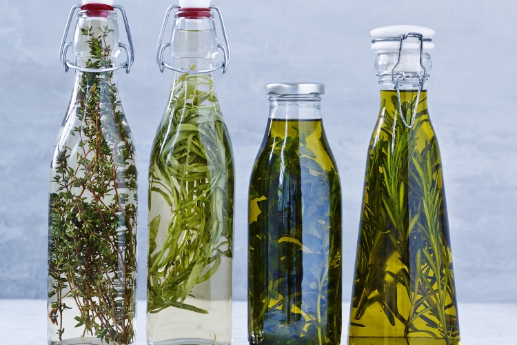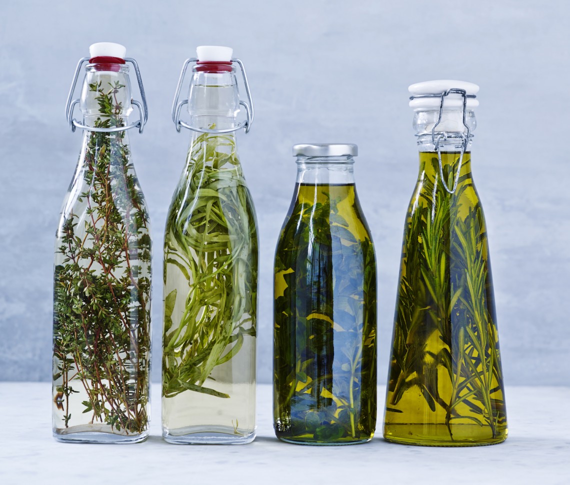 Skal du bruge resterne af et bundt krydderurter eller trænger de bare til at klippes lidt ned, får du her et par gode opskrifter på krydderolie og -eddike, der kan bruges i både madlavning og dressinger.