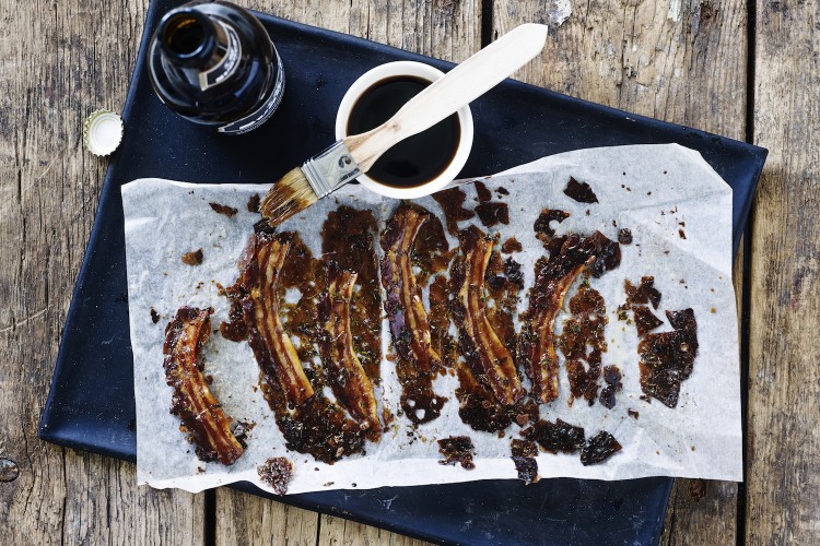 Øl- og timianglaseret bacon