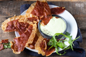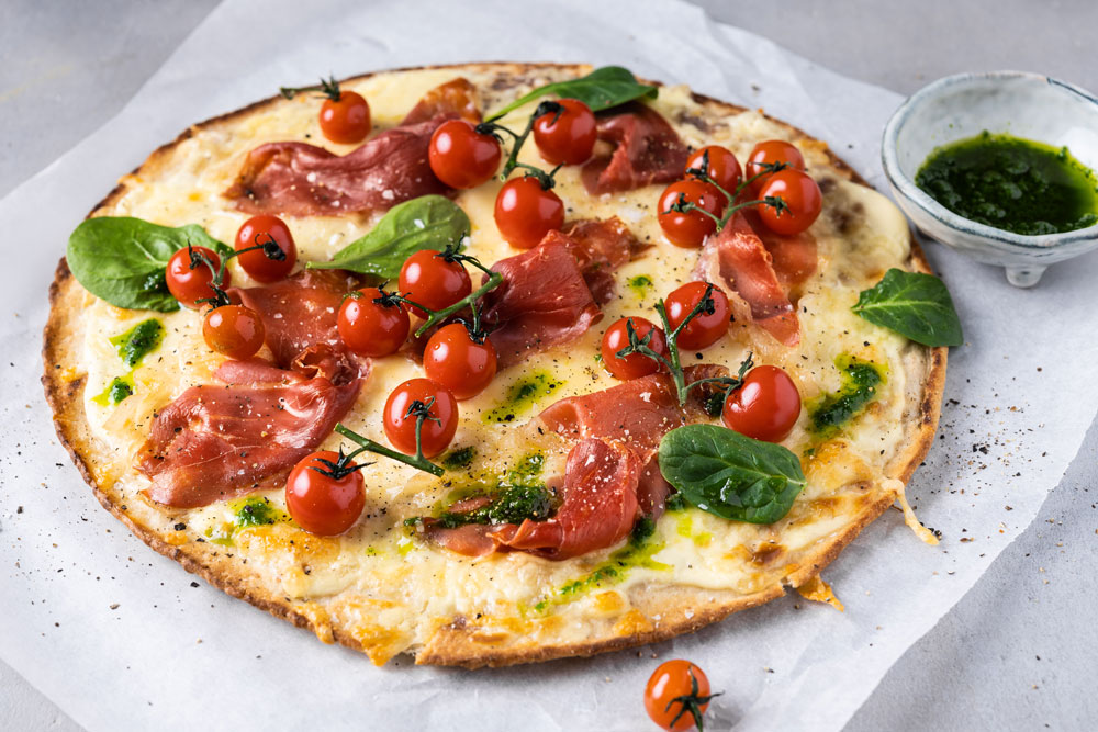 Her får du to forskellige opskrifter med den italienske parmaskinke, som passer perfekt til sommermånedernes lette spise – en opskrift på en lækker minipizza med hvid sauce og spinat og en let opskrift på sprøde skiver parmaskinke med urtemayonnaise.