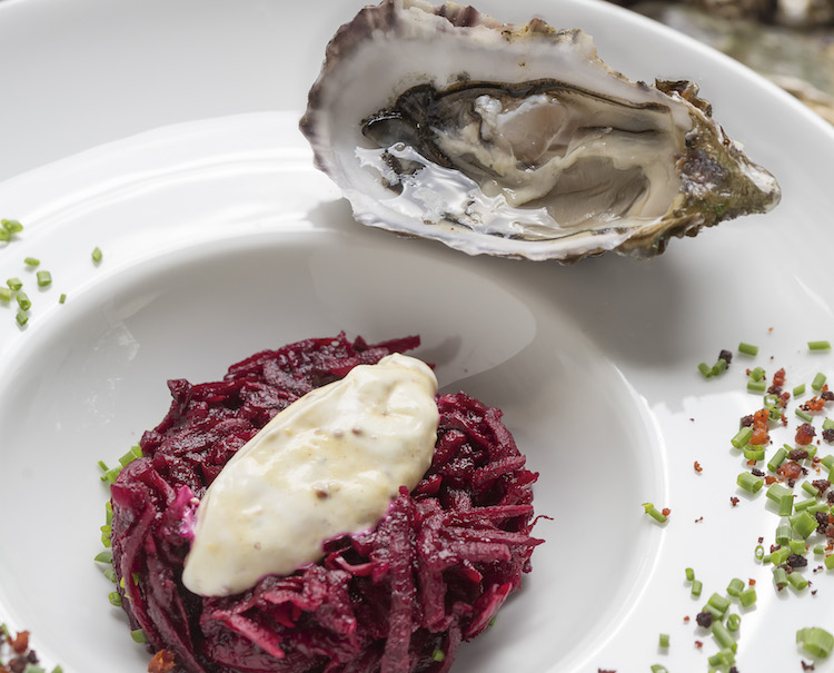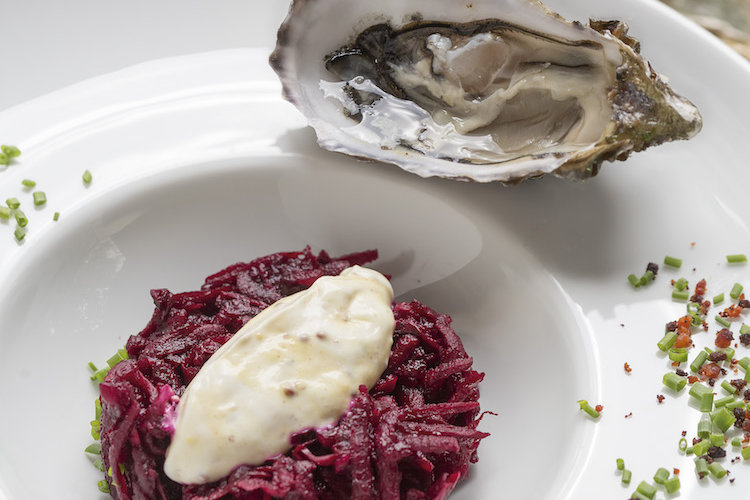 Lækker forret til festmiddagen med rødbedetatar og østers
