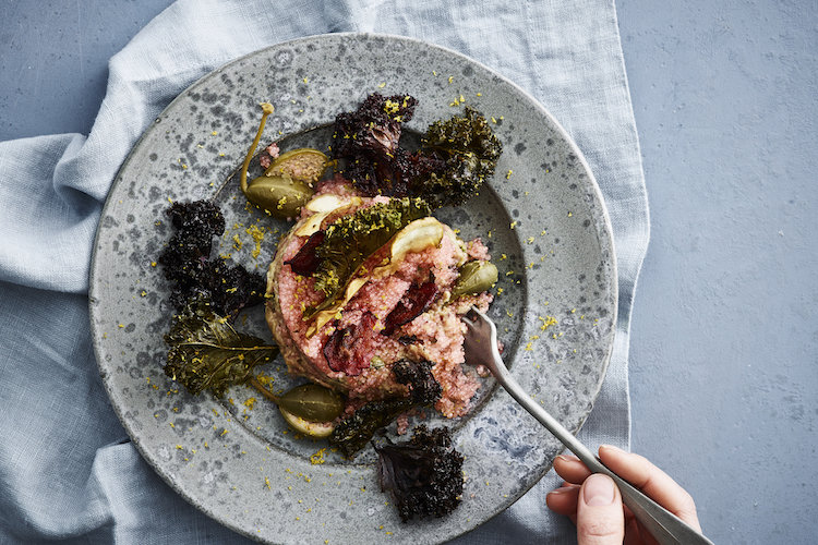 Tatar er altid lækkert, men rører du den med stenbiderogn, får du en lettere og lidt mere interessant ret – spis den med lækre sprøde grøntsagschips til.