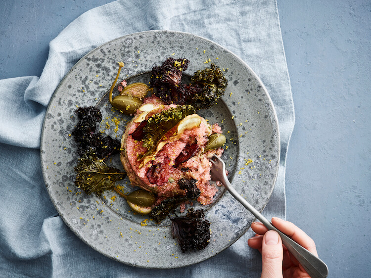Rørt tatar med stenbiderrogn og sprøde grøntsagschips