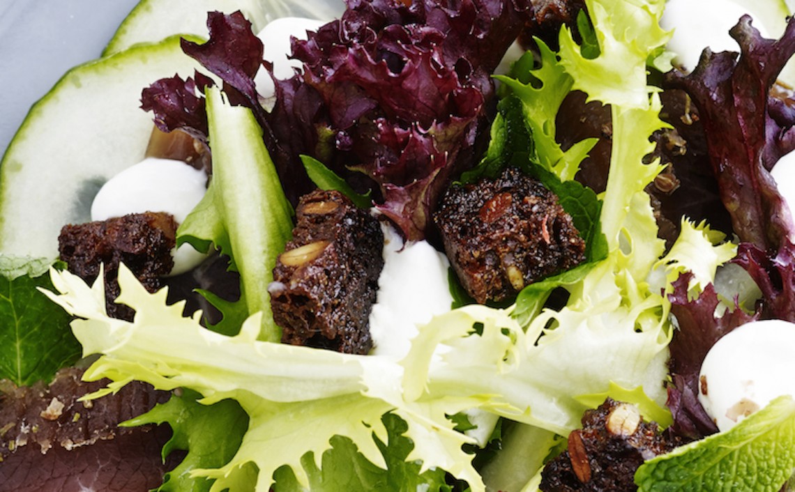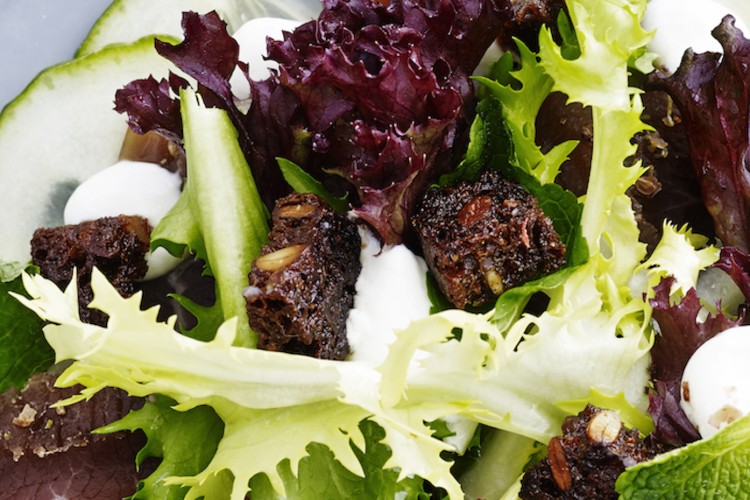 Lad være med at smide det tørre rugbrød ud, skær det i stedet i små tern, vend dem i lidt olie, salt og bag dem sprøde i ovnen I cirka 8-10 minutter på 200 grader.