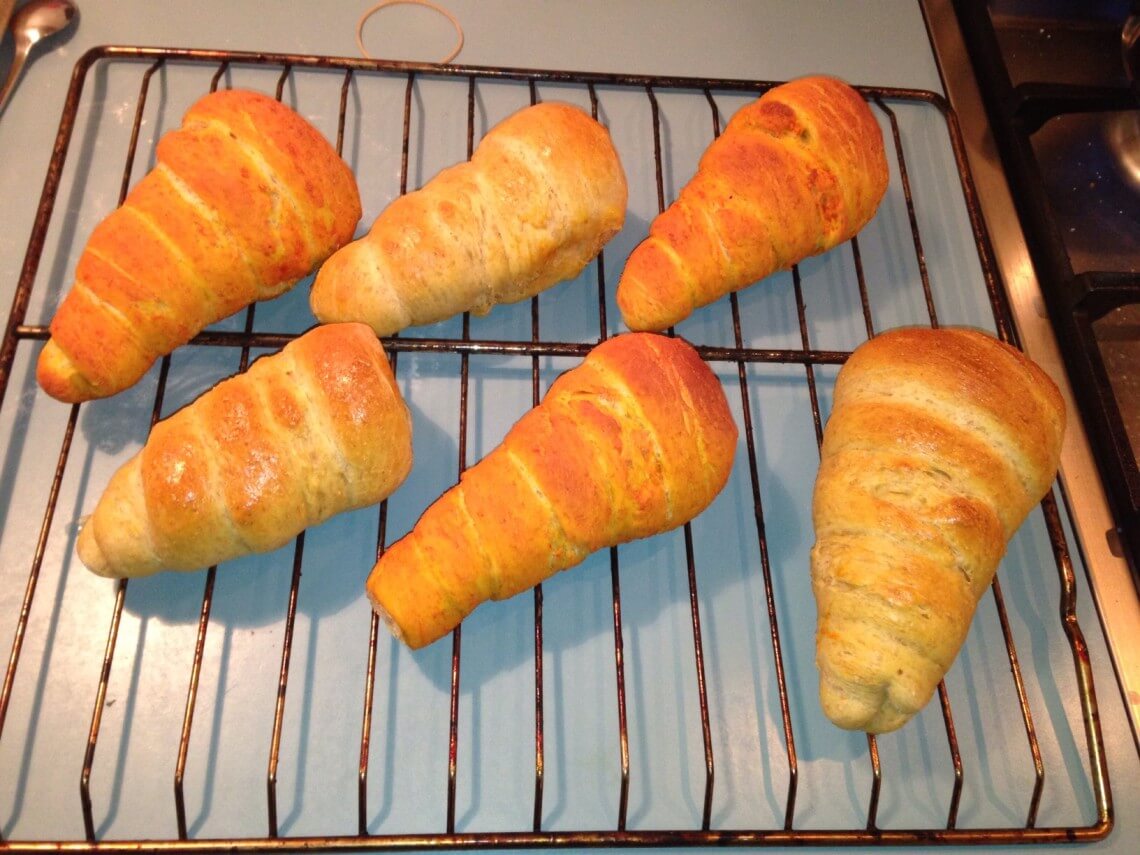 Drengene og jeg bagte sammen de her gulerodsbrød og fyldte dem med tunsalat og æggesalat. De er en rigtig god idé til påskefrokosten, hvor børnene hellere vil lege, end at sidde til bords med de voksne.