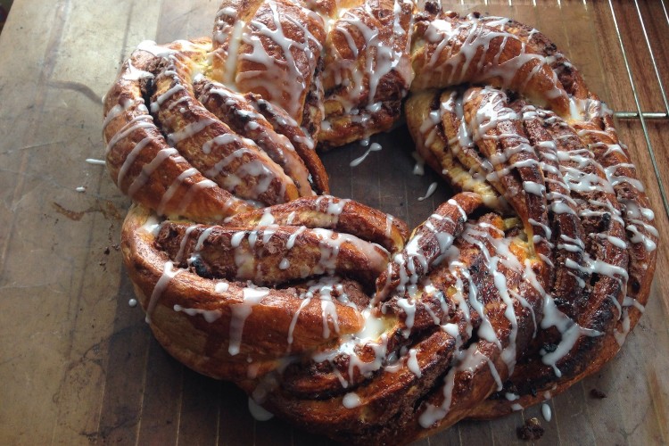 Snoet kardemommering med hasselnøddecreme og hindbær