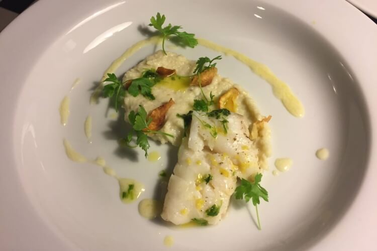 Kommes i et fad. Fordel de 40 g smør henover fisken sammen med revet citronskal, salt og hvid peber. Bag torsken ved 65-70 grader på varmluft i 30 minutter. Dette gør, at fisken bliver lækker og saftig og ikke tørrer ud.