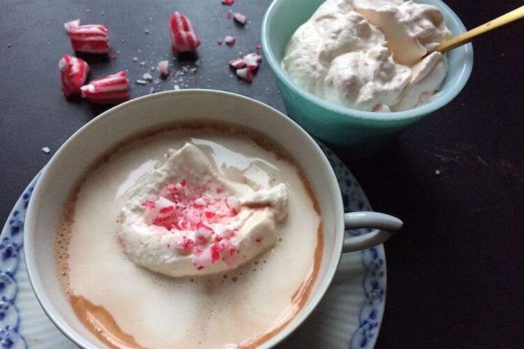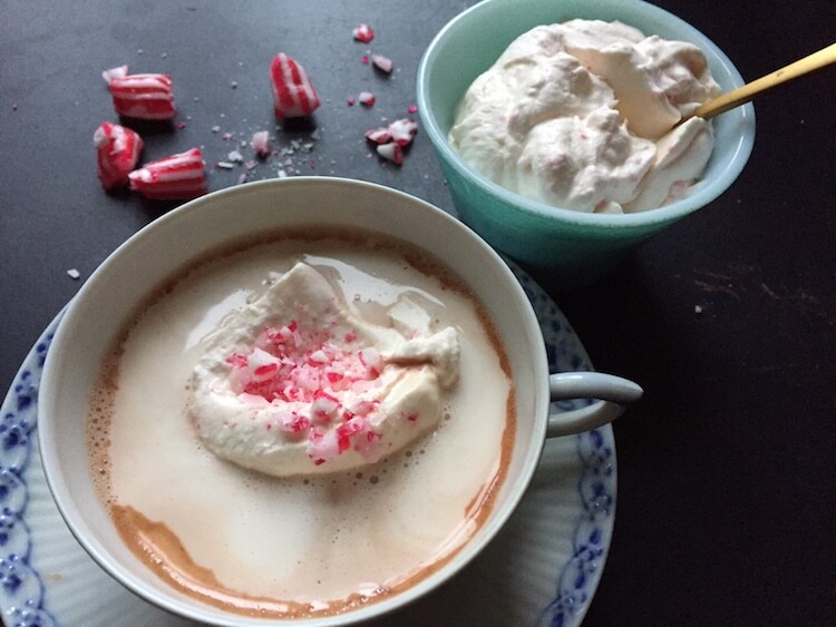 Varm kakao er skønt på en kold vinterdag. Giv den et juletwist med pebermyntebolsjer.
