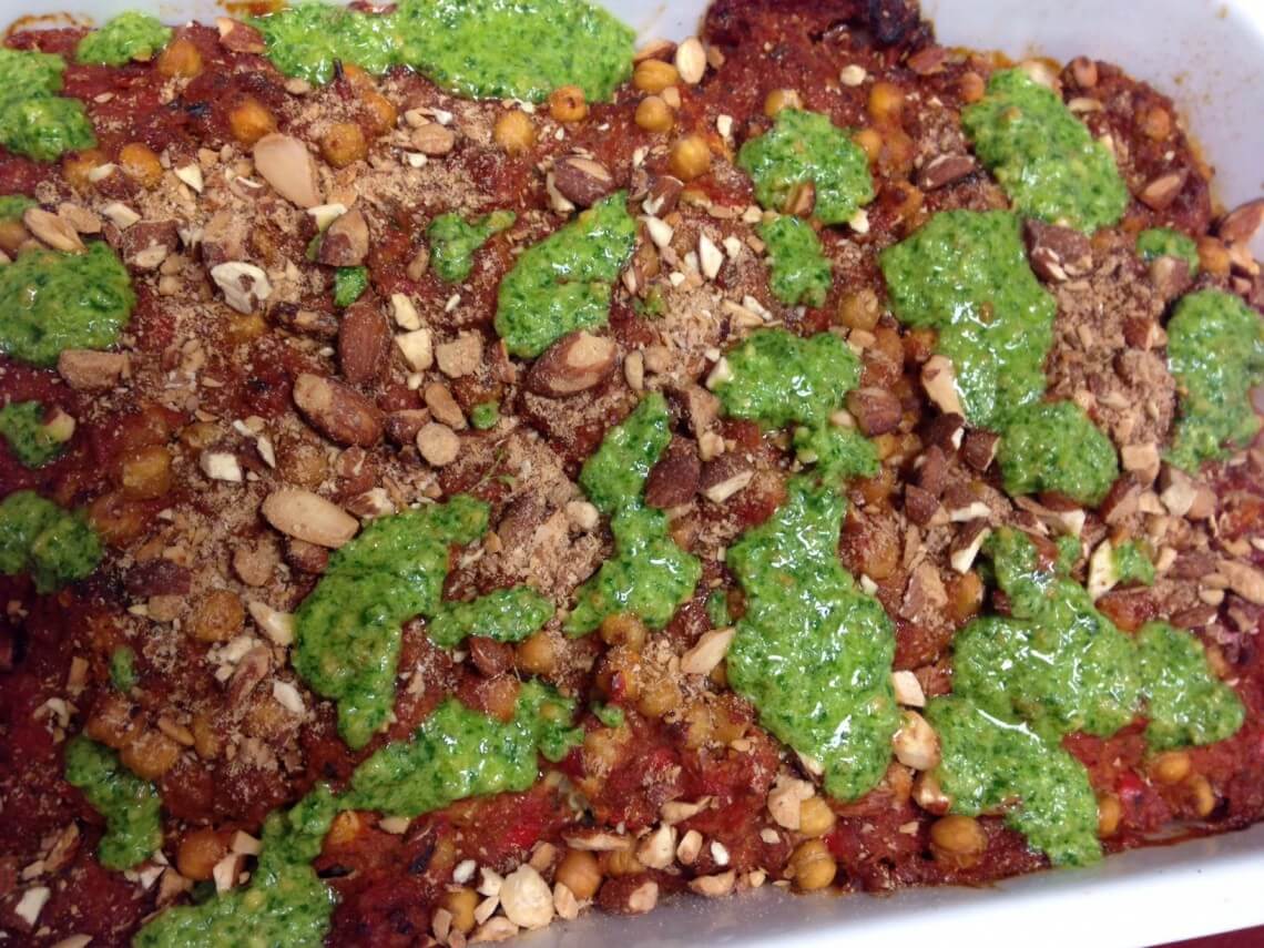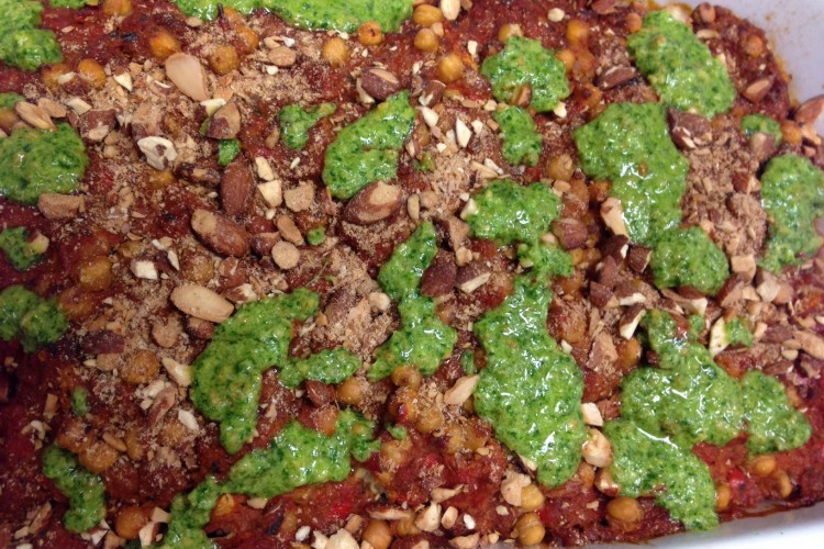 Drys med hakkede ristede mandler og frisk persille, eller korianderpesto ved serveringen.