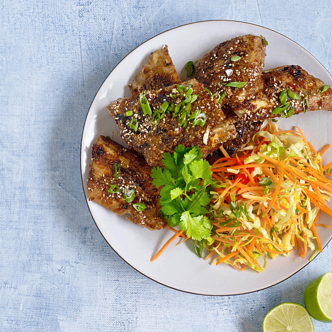 Server de vietnamesiske ribben med en lækker asiatisk råkost.