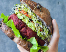 Opskrift | Rødbedeburger med spirer og avocado